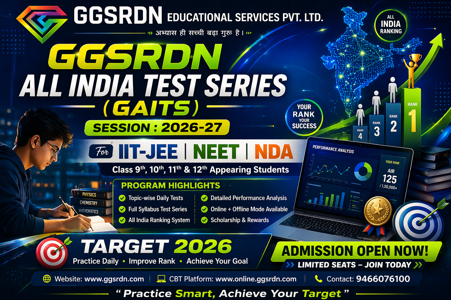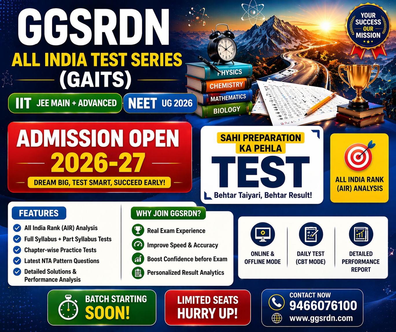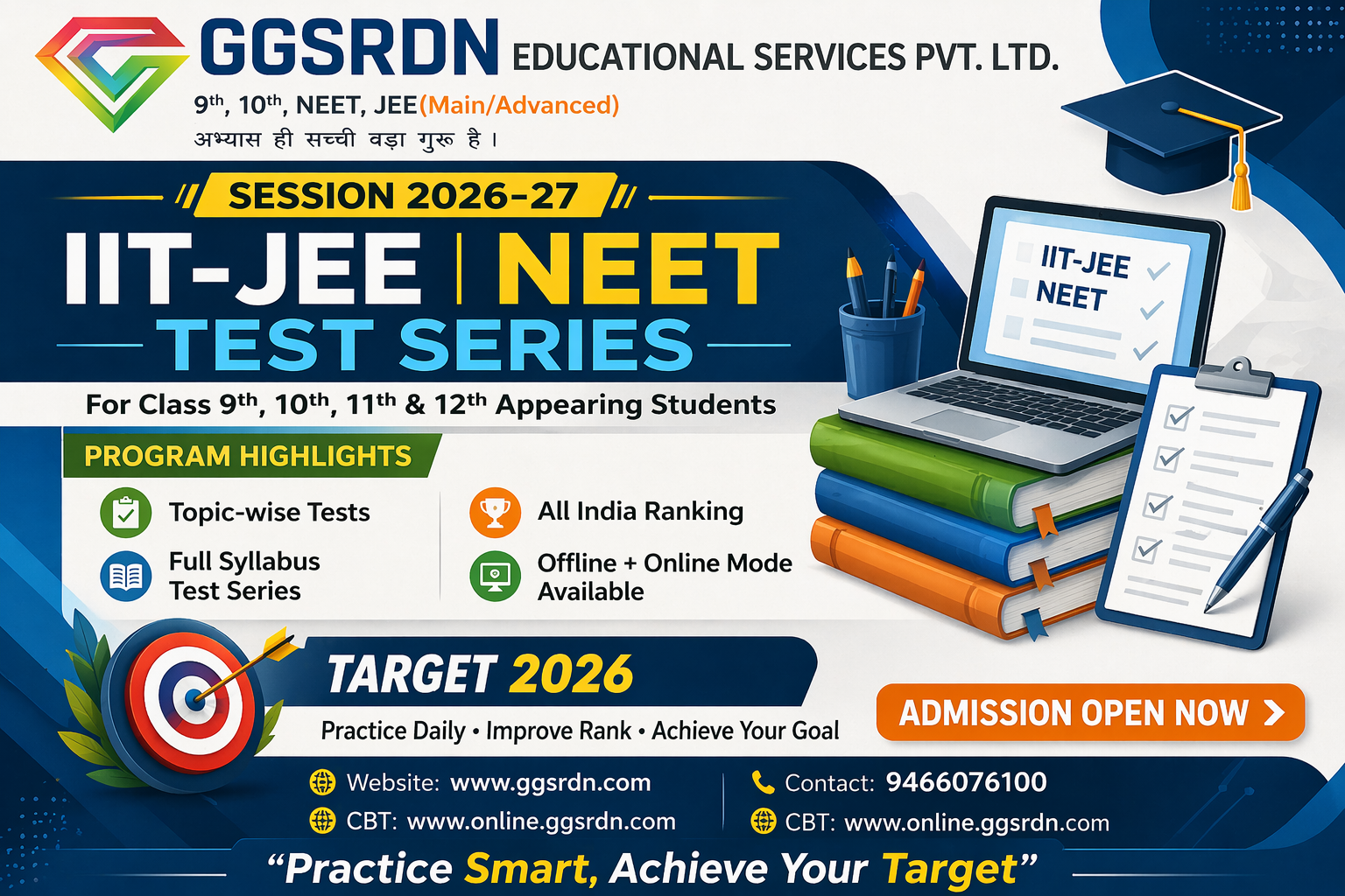 GGSRDN conduct Test Series for JEE (Main / Advanced) & NEET (UG) which is also available in postal mode. The Test Series for JEE (Main / Advanced) includes Schedule & Syllabus and Question Papers. GGSRDN have been designed keeping in mind the ease of learning for students.