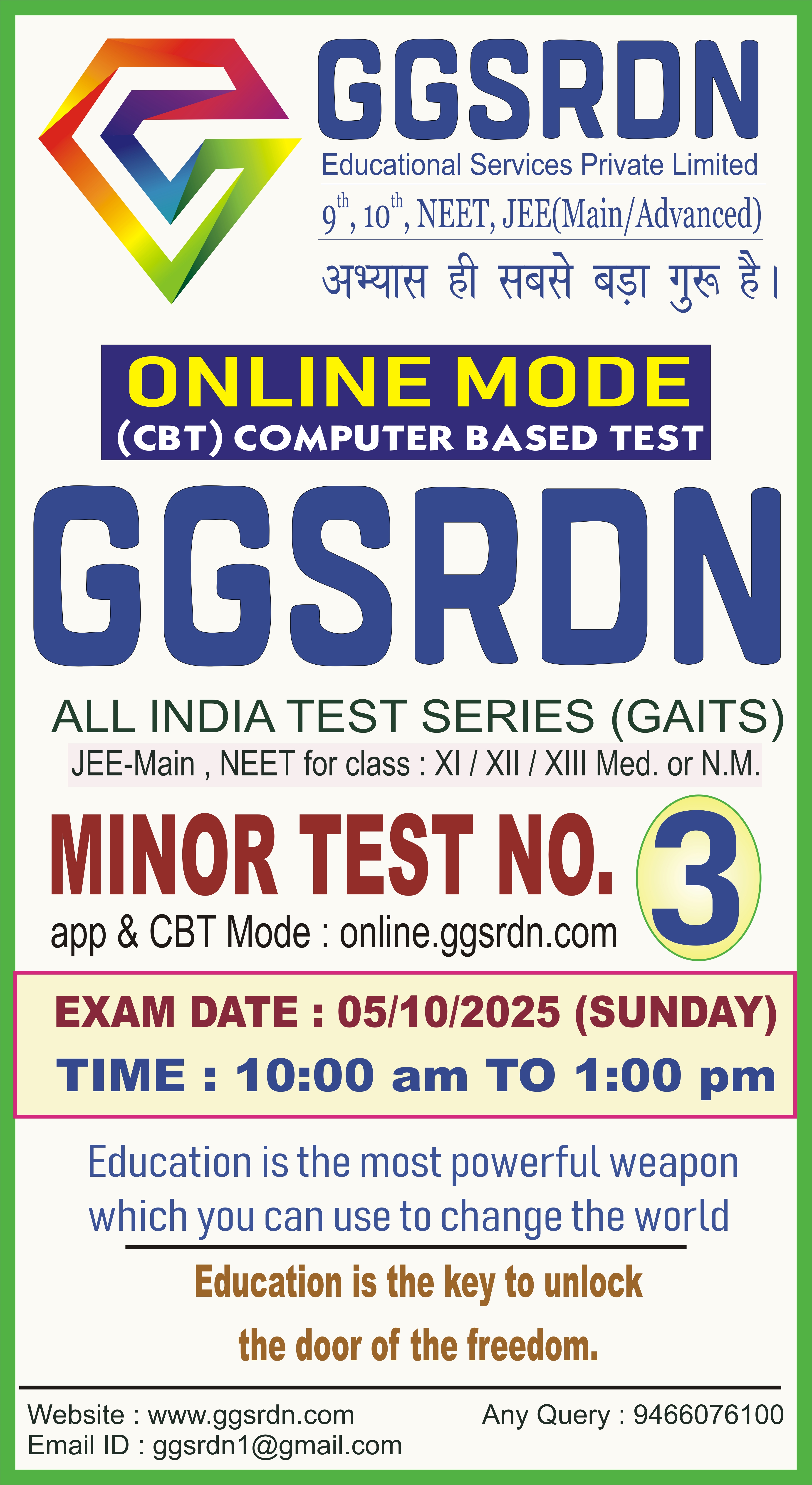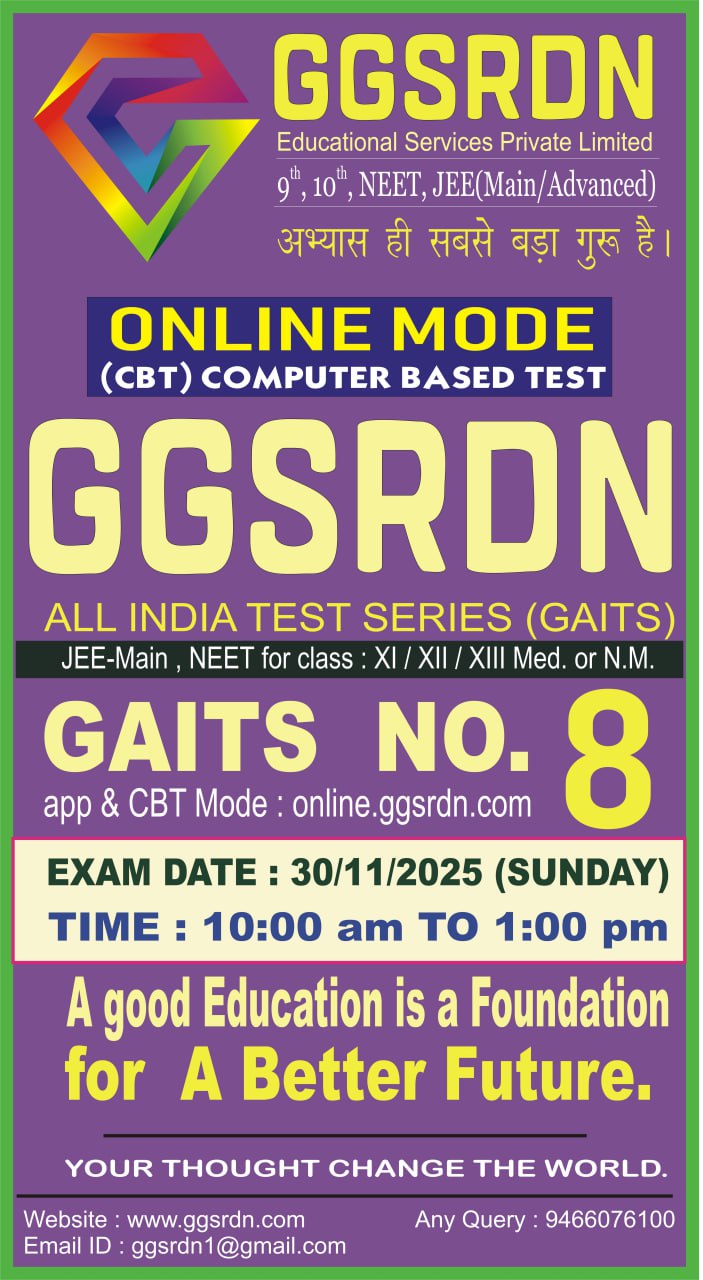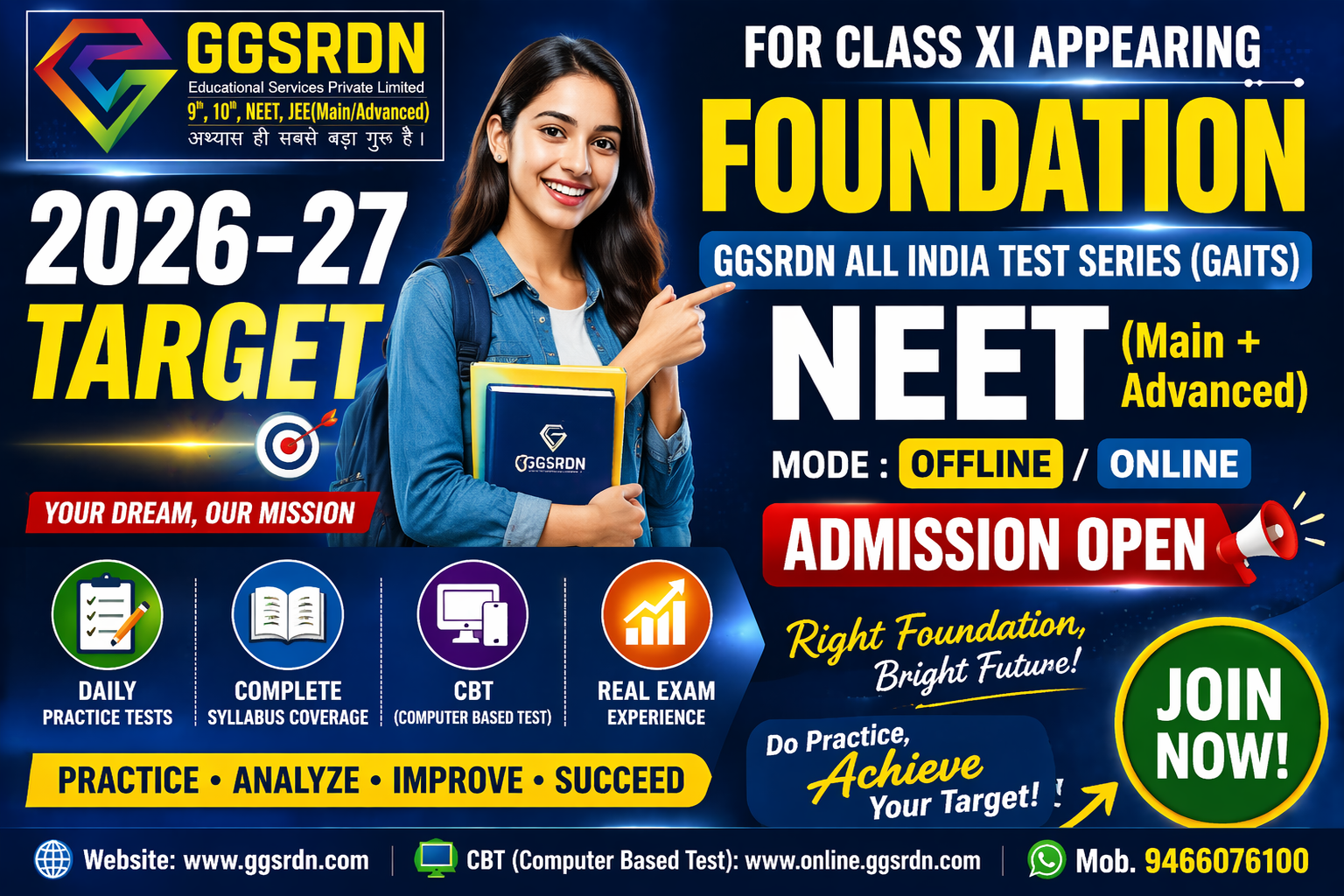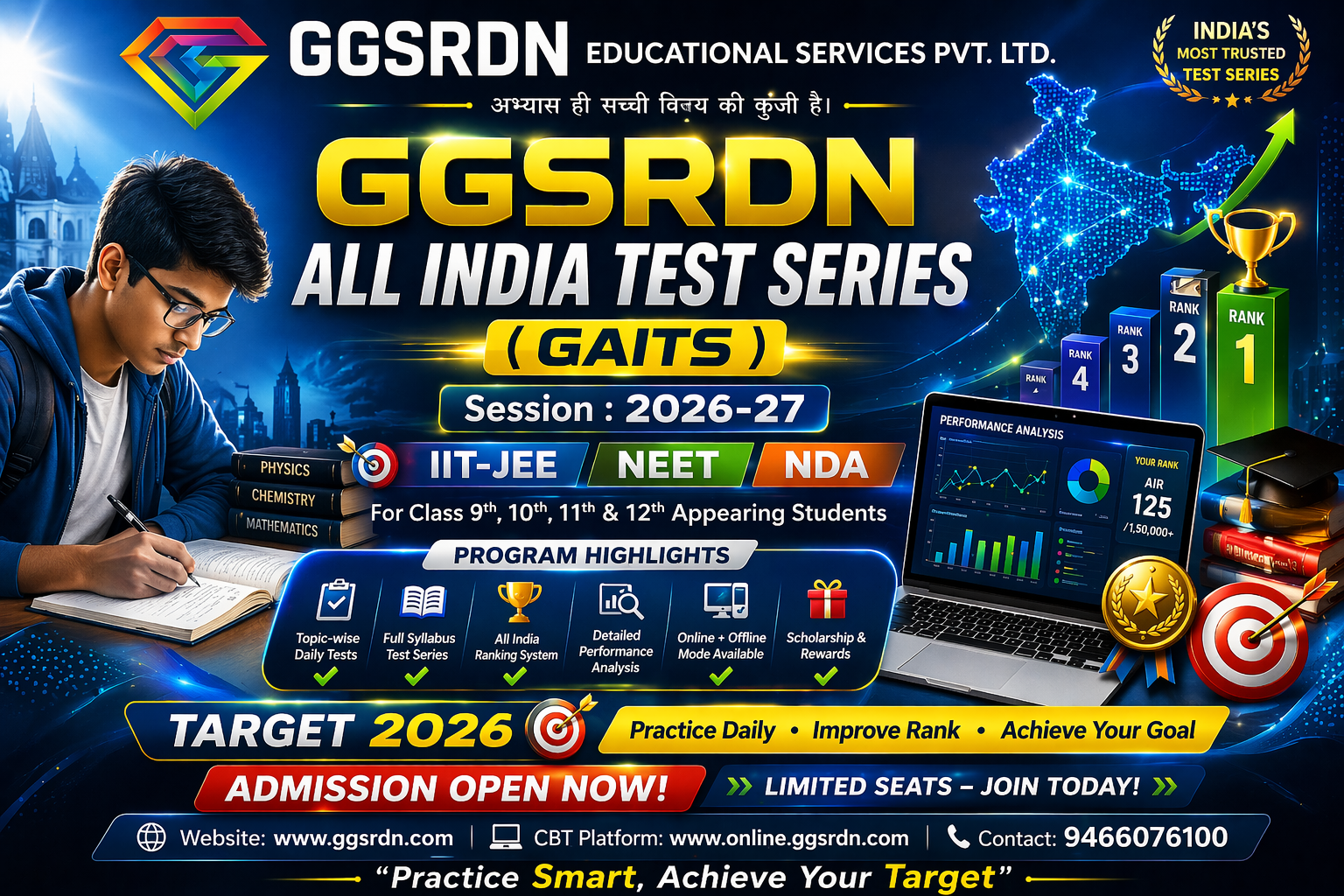 GGSRDN conduct Test Series for JEE (Main / Advanced) & NEET (UG) which is also available in postal mode. The Test Series for JEE (Main / Advanced) includes Schedule & Syllabus and Question Papers. GGSRDN have been designed keeping in mind the ease of learning for students.